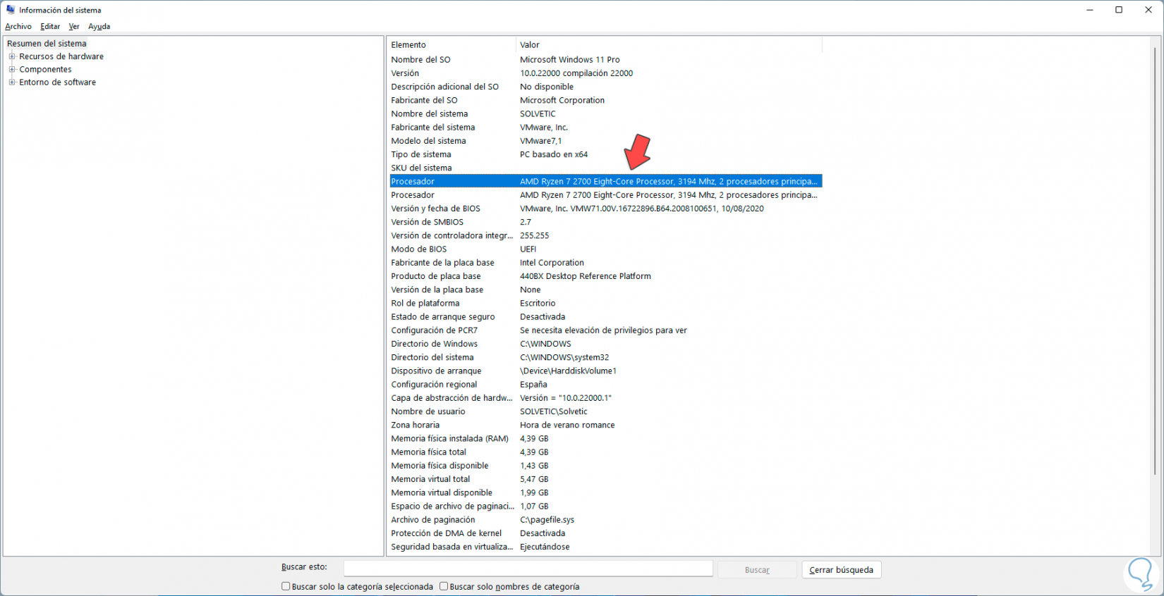 3. Saber procesador de mi PC Windows 11 con Información del sistema