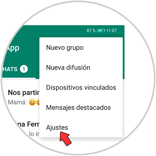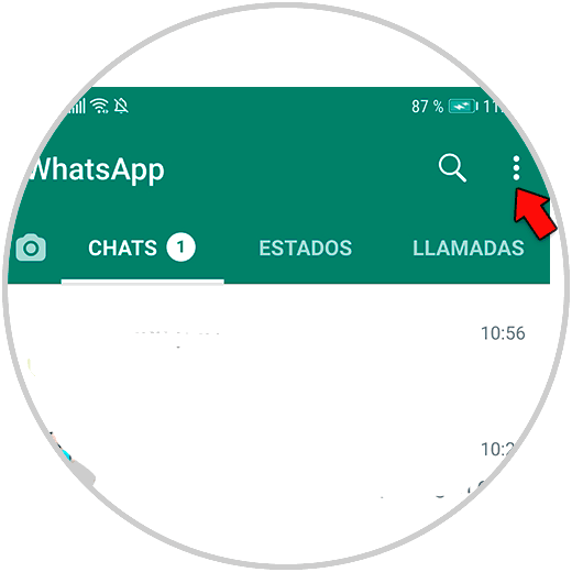 Lo primero que debes hacer es entrar en la App de WhatsApp y seleccionar el icono de los 3 puntos de la parte superior.