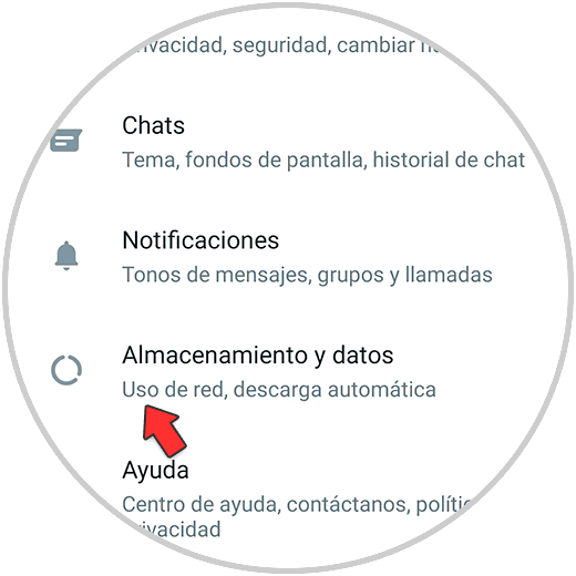 A continuación tienes que pulsar en el apartado de "almacenamiento y datos"