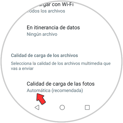 Ahora debes dirigirte al apartado inferior en el que pone "Calidad de carga de las fotos"
