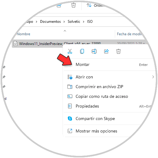 Abrimos el Explorador de archivos, damos clic derecho sobre la imagen ISO y ahora es posible montarla dando clic en “Montar”: