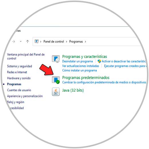 Veremos lo siguiente. Allí damos clic en “Programas predeterminados”