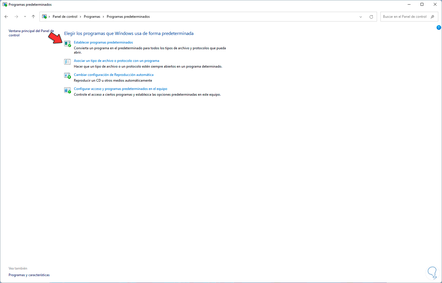 Luego será desplegado lo siguiente. Damos clic en "Establecer programas predeterminados"