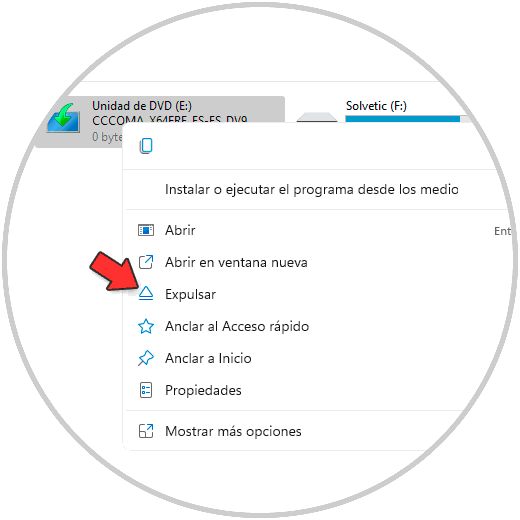 Para expulsarla, vamos a Este equipo, damos clic derecho sobre la unidad virtual y seleccionamos "Expulsar":
