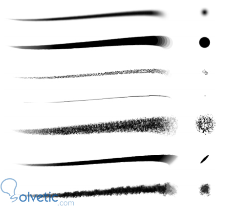 Una de las cosas que podemos cambiar es el tamaño de la brocha, con esto lograremos hacer trazos más gruesos o más finos, pero no solo de esto podemos vivir, también podemos cambiar la forma de la brocha.