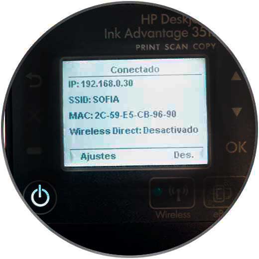 Como un punto final en las impresoras modernas es posible ver su IP en el panel de la impresora: