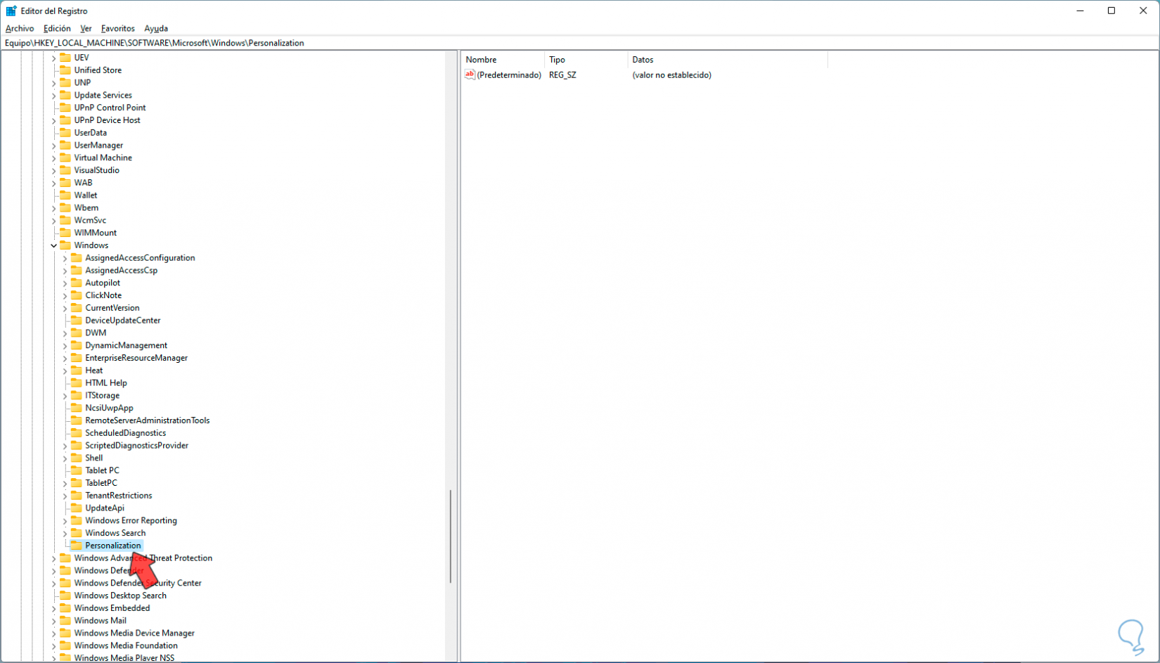 Aplicamos los cambios. Para establecer de nuevo la pantalla de bloqueo eliminamos la clave creada anteriormente en el Editor de registros.