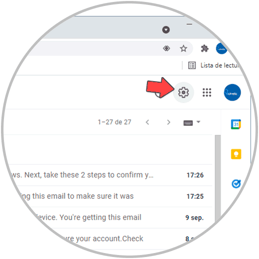 Abrimos Gmail y damos clic en "Configuración" en la parte superior derecha: