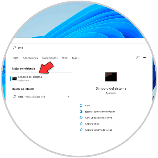 La consola de CMD es otra de las alternativas para esta información, abrimos CMD desde Inicio:
