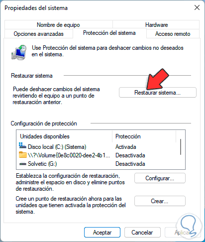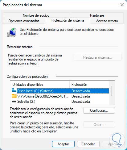 Solvetic te ha explicado el proceso completo para activo no la Protección del sistema en Windows 11 y usar esta práctica funcionalidad.