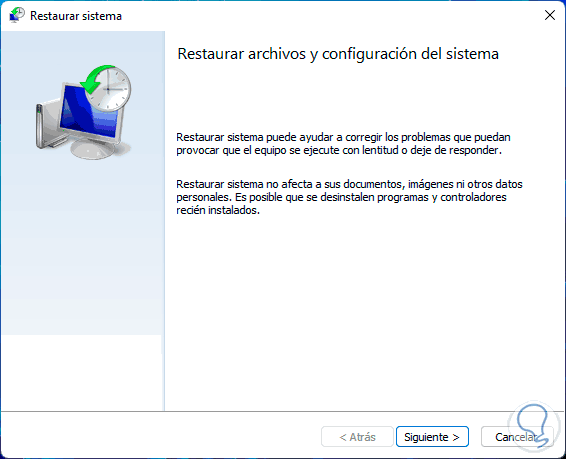 Damos clic en “Restaurar sistema” y para ver el asistente: