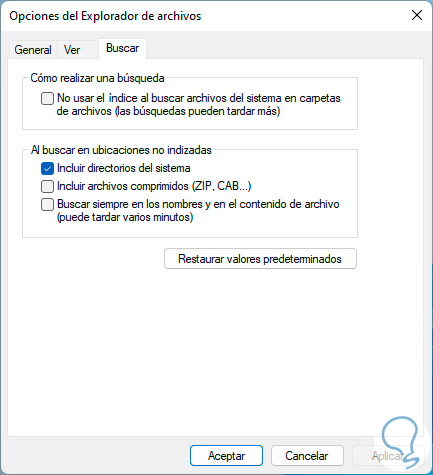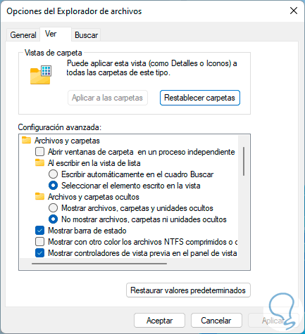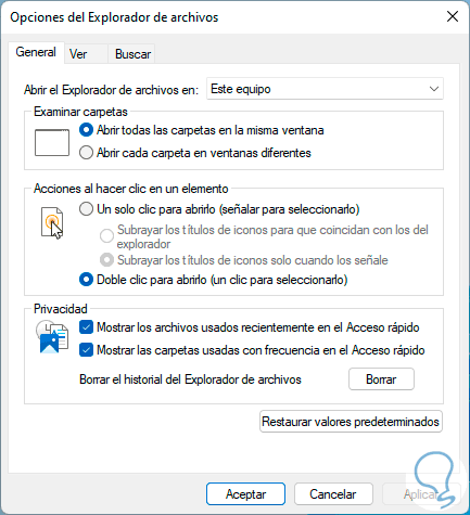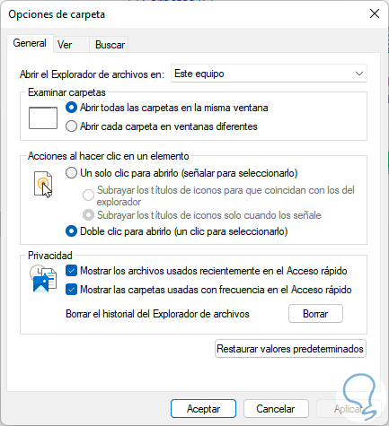Esto abrirá las opciones del Explorador de archivos en Windows 11: