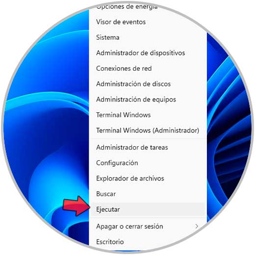 El comando Ejecutar es otra de las opciones disponibles, para ello abrimos Ejecutar desde inicio:
