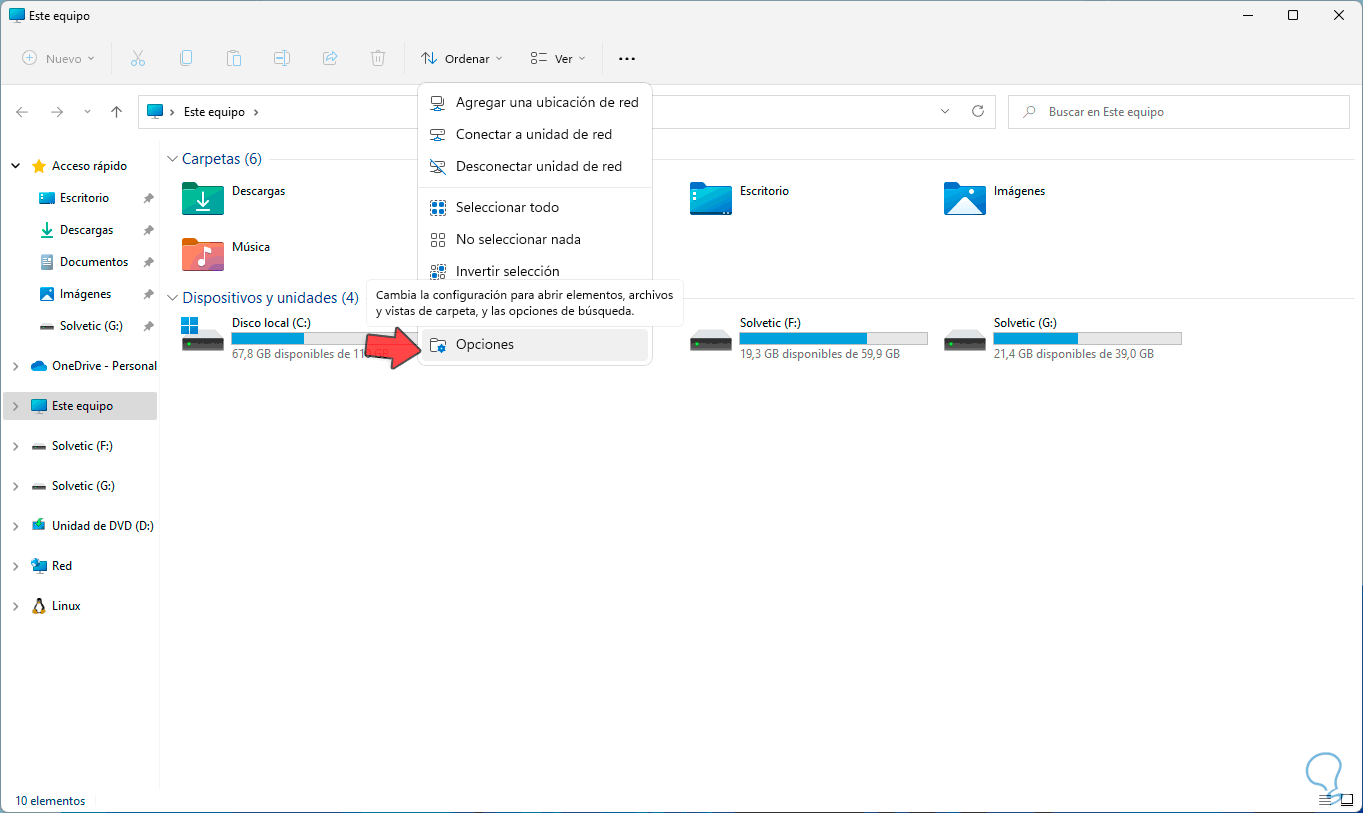 El primer método será usar el propio Explorador, para este método abrimos el Explorador de archivos e iremos a "Ver más - Opciones":