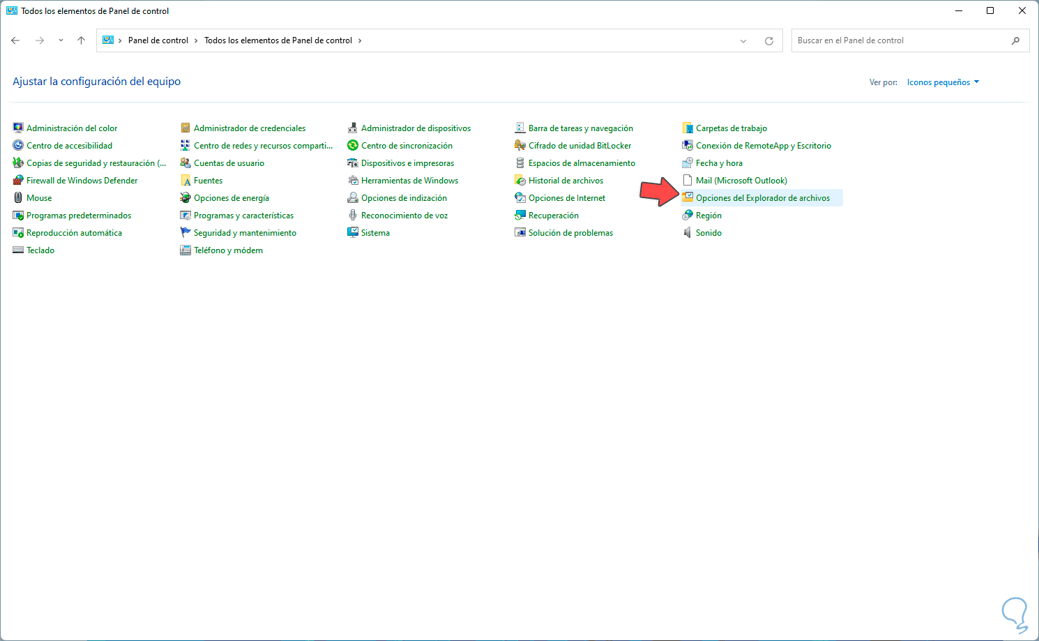 2. Abrir opciones Explorador de archivos Windows 11 desde Panel de control