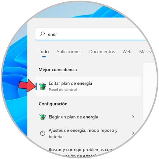 En el buscador de Inicio ingresamos "energía":
