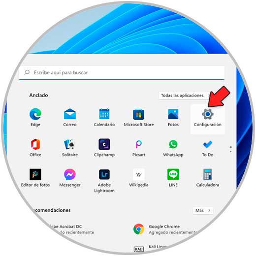Esta opción Solvetic te la explica como un método alternativo para ir a la consola de CMD del paso anterior, vamos a “Inicio – Configuración”: