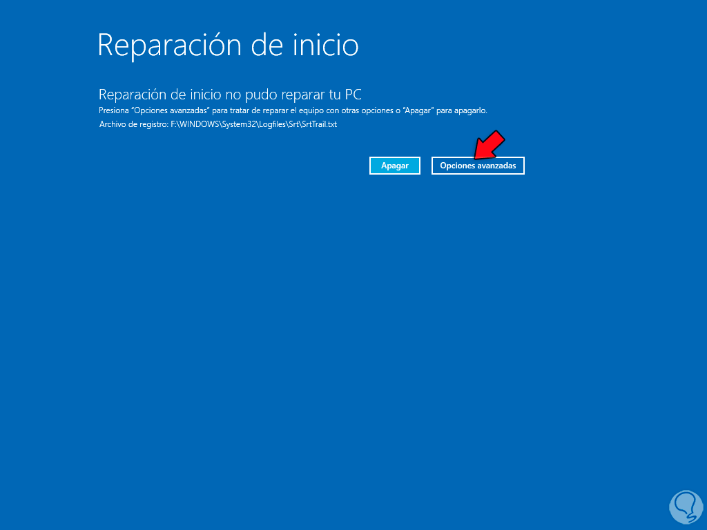 Damos clic en "Reparar el equipo" y veremos lo siguiente: