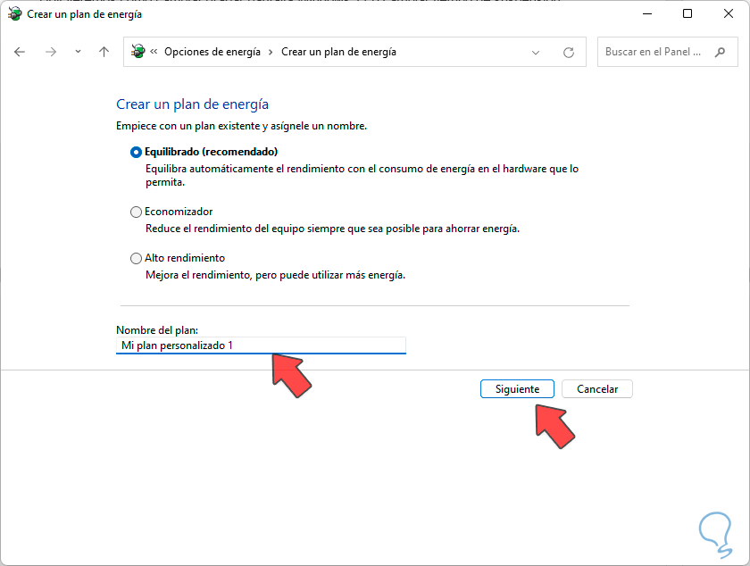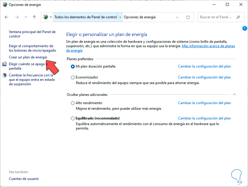 También podemos crear un plan personalizado desde "Crear un plan de energía"