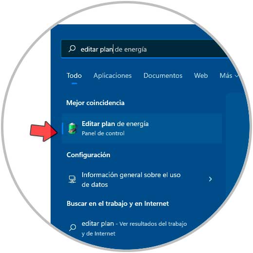Vamos a la búsqueda de Windows 11 para encontrar el "Editor de plan de energía"