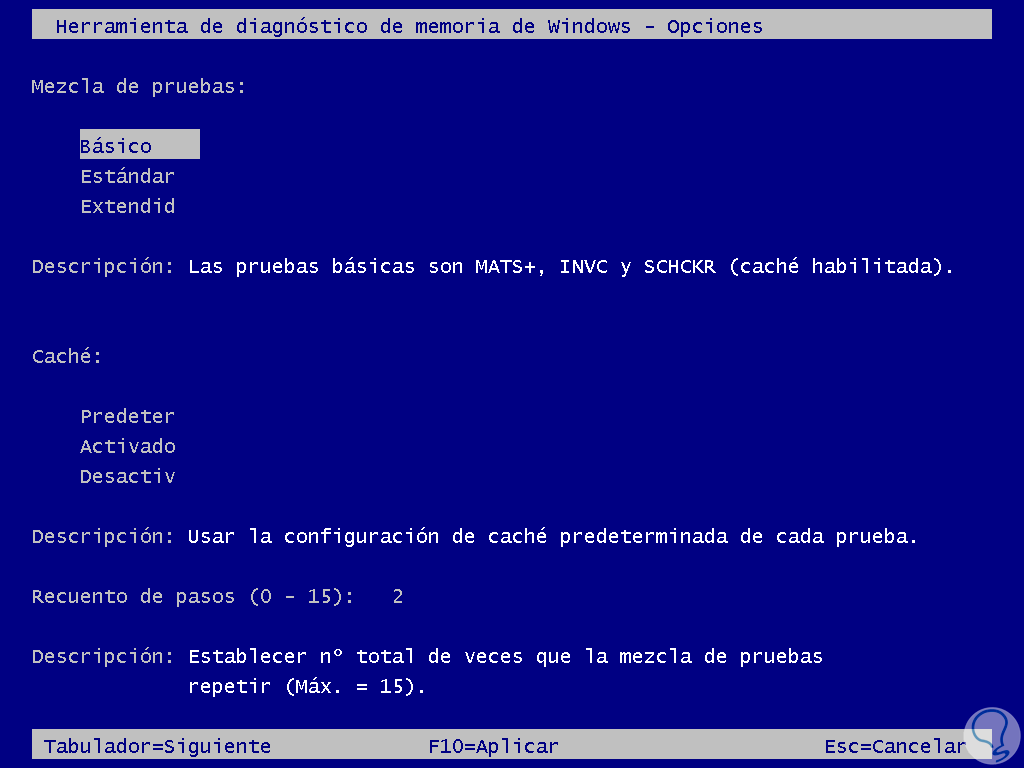 Pulsamos la tecla F1 para seleccionar el tipo de análisis a usar (si es necesario), veremos lo siguiente: