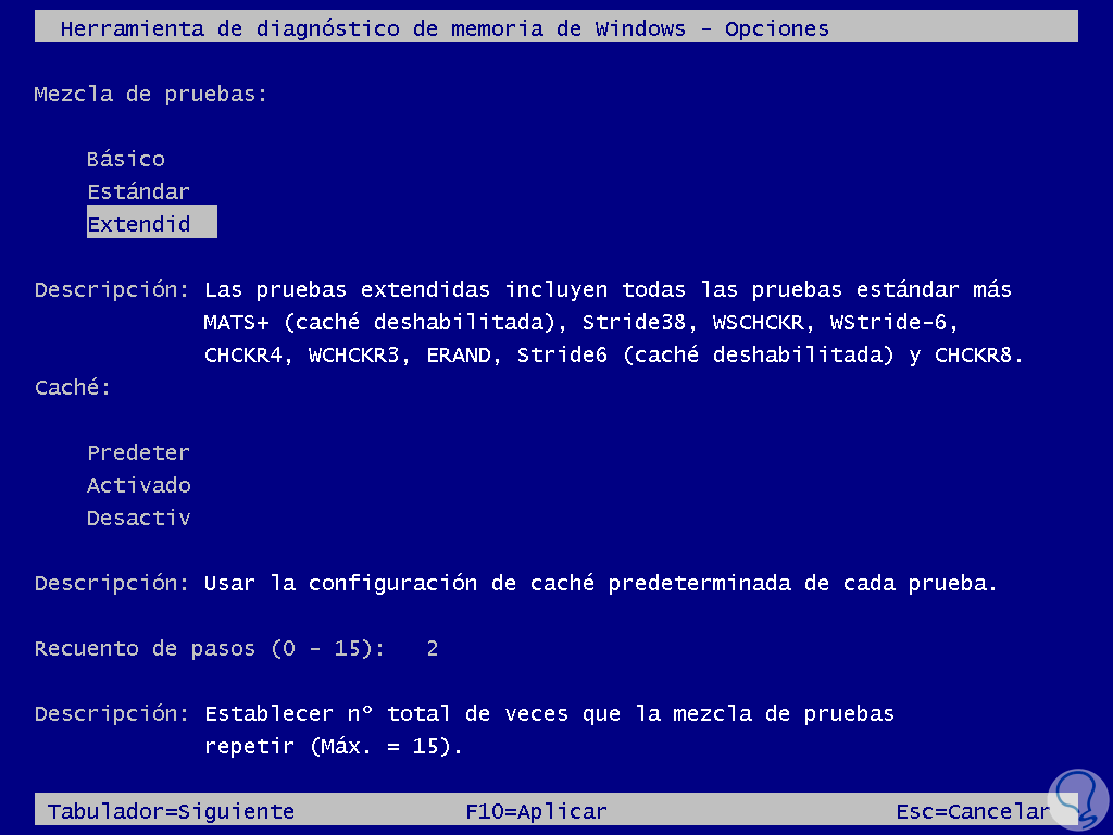 - Extendido: es un análisis más completo ya que abarca las variables MATS+ (con la cache deshabilitada), Stride38, WSCHCKR, WStride-6, CHKCKR4, WCHCKR3, ERAND, Stride6 (con la cache deshabilitada) y CHCKR8