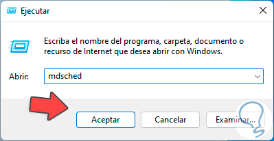 En la ventana de Ejecutar ingresamos "mdsched": Damos clic en Aceptar
