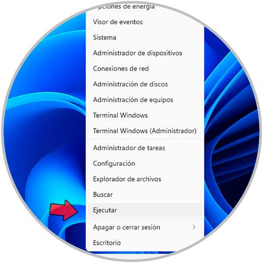 Es uno de los métodos más sencillos, para ello abrimos Ejecutar desde el menú contextual de Inicio: