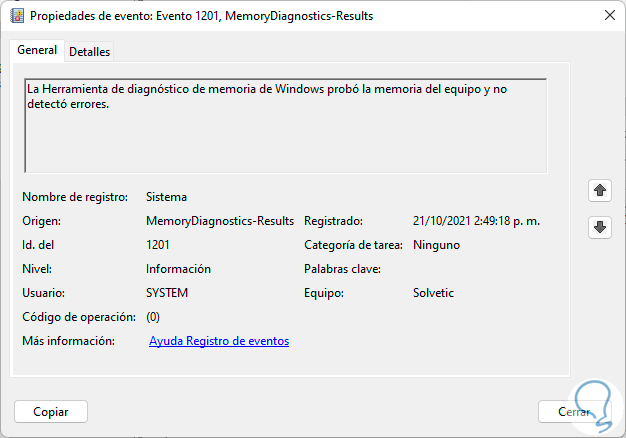 Esta herramienta de diagnóstico de memoria RAM se encarga de hacer un análisis minucioso de cada variable y aspecto de la RAM para encontrar errores y proceder a su corrección. Gracias a tener Solvetic explicará algunos métodos para ejecutar esta herramienta de diagnóstico en Windows 11.
