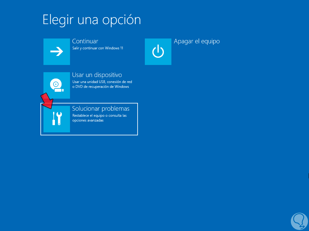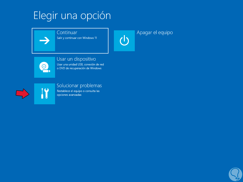 Seleccionamos “Solucionar problemas” veremos lo siguiente: