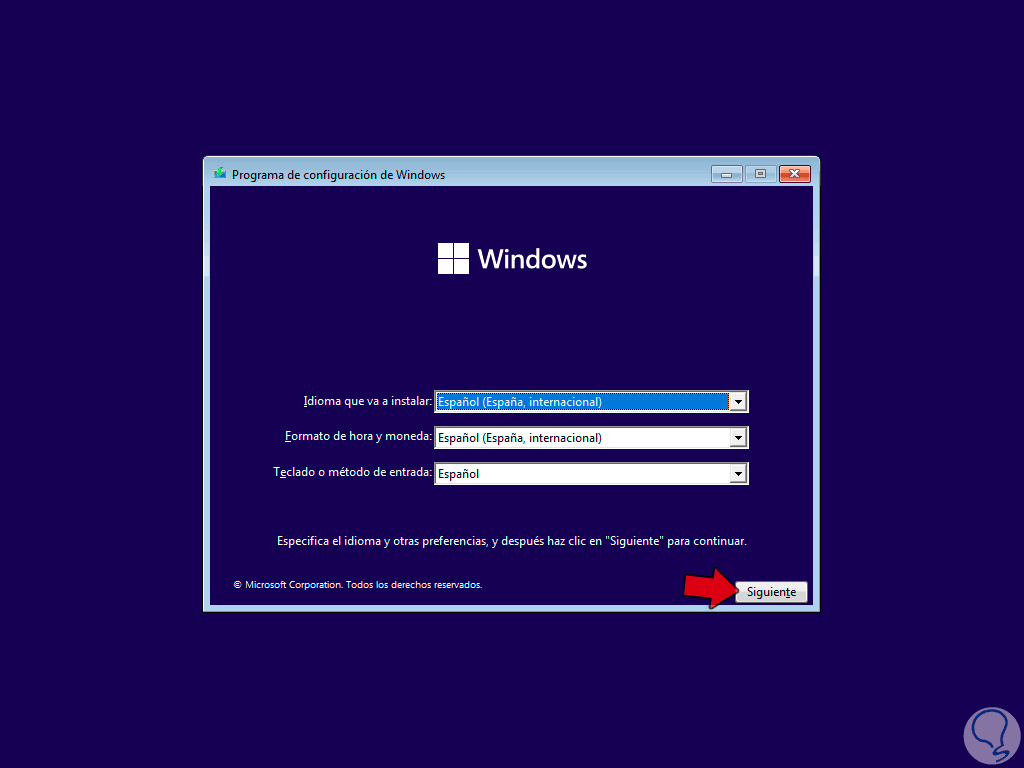 Luego la grabamos en una USB o DVD y arrancamos el equipo desde allí. Damos clic en Siguiente: