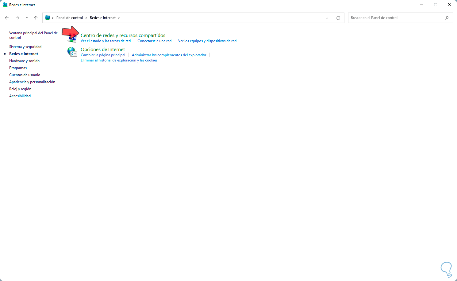 Allí damos clic en “Centro de redes y recursos compartidos”