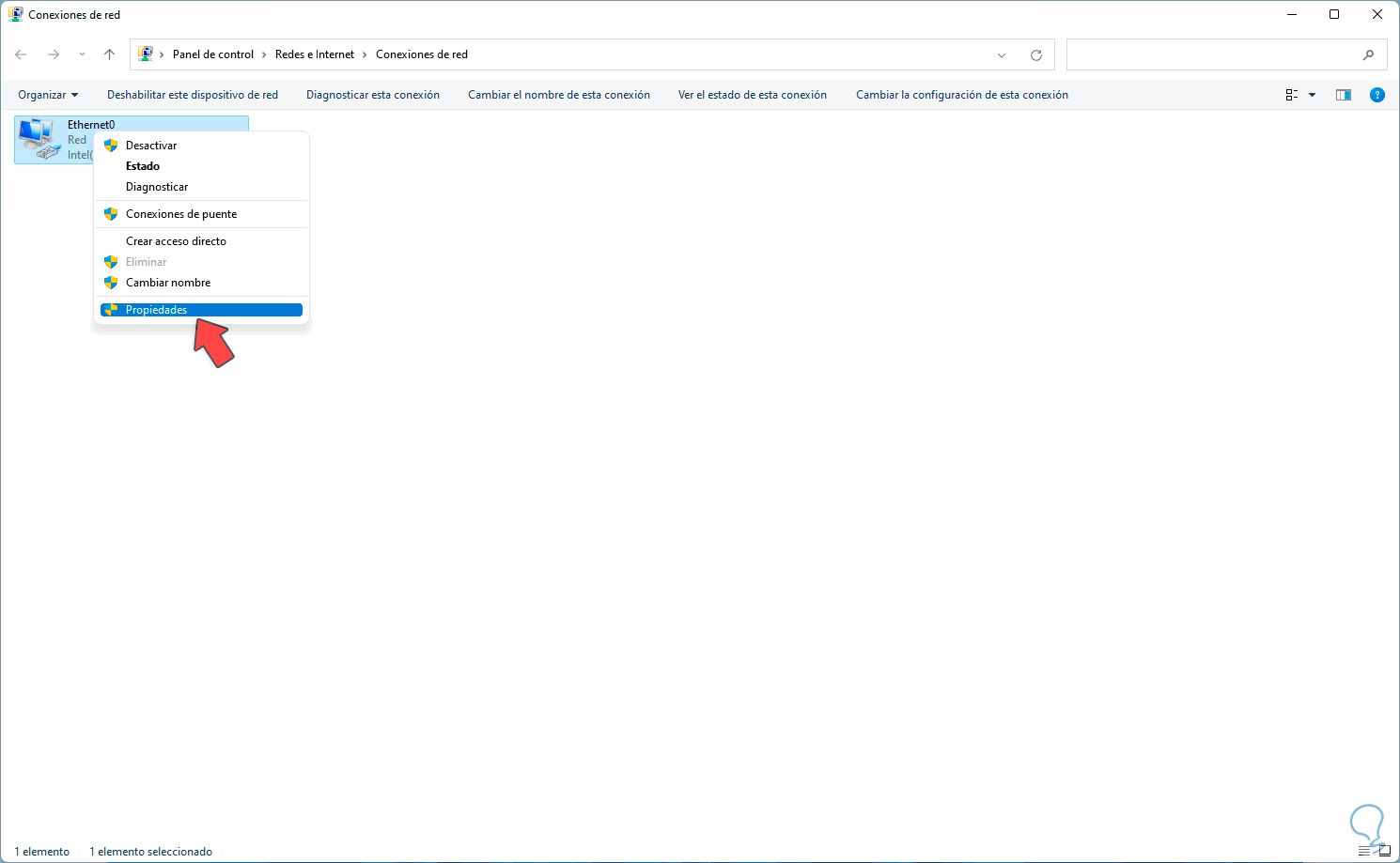 En la nueva ventana abierta damos clic derecho sobre el adaptador de red y seleccionamos la opción "Propiedades":