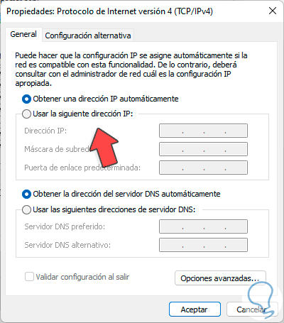 2. Cómo poner una IP Fija a mi PC Windows 11 desde menú