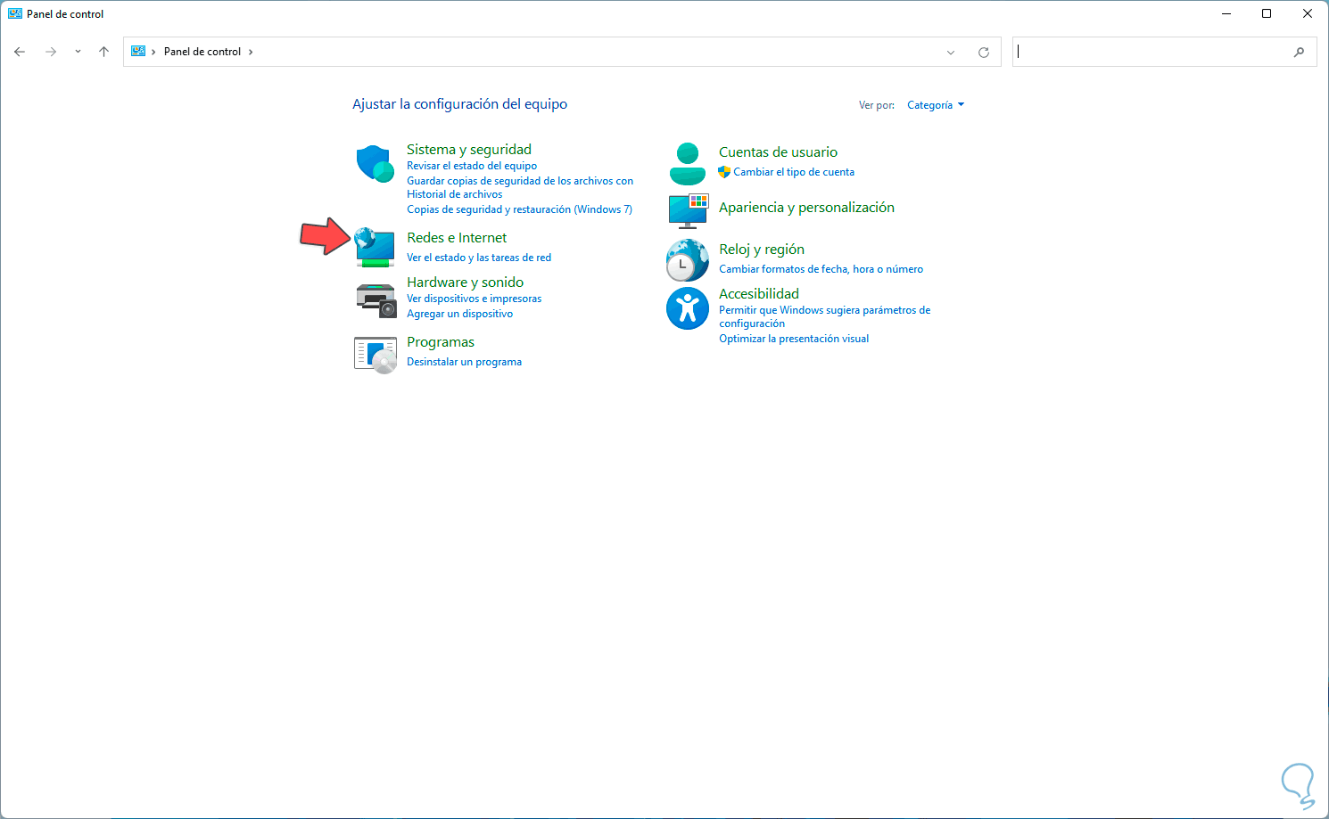 Veremos las siguientes opciones: Damos clic nen “Redes e Internet” para ver lo siguiente: