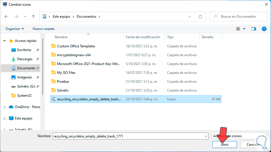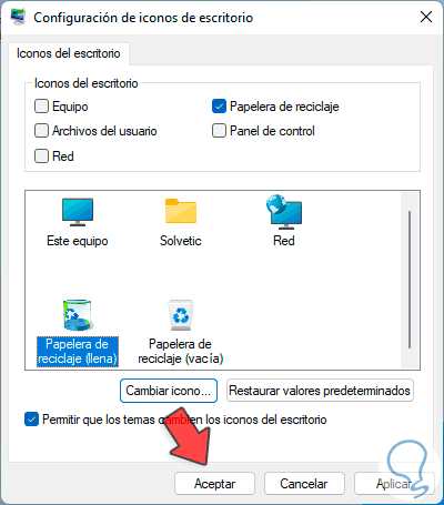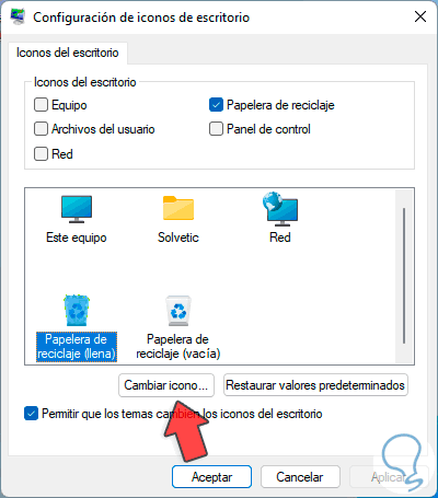Cómo cambiar icono de Papelera Windows 11