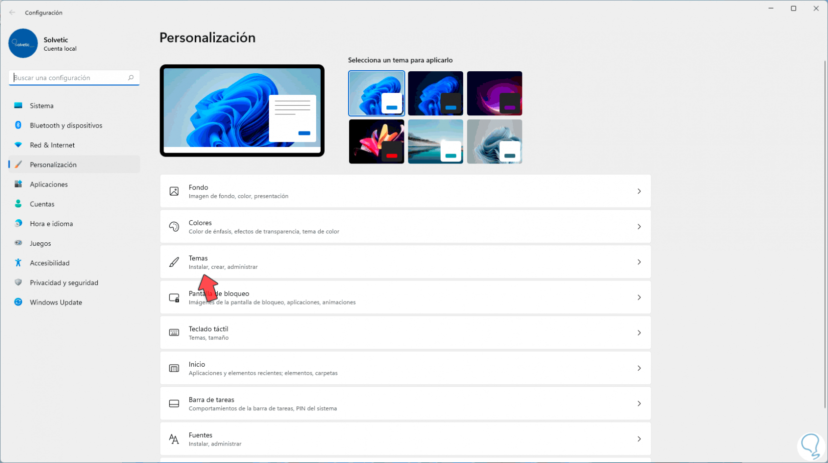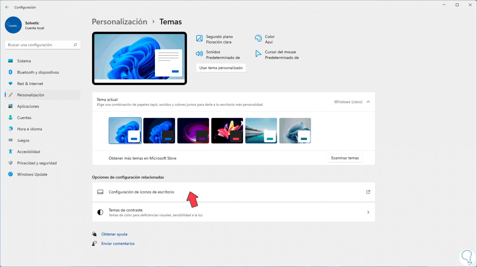Veremos lo siguiente: Damos clic en "Temas" para ver la pantalla siguiente