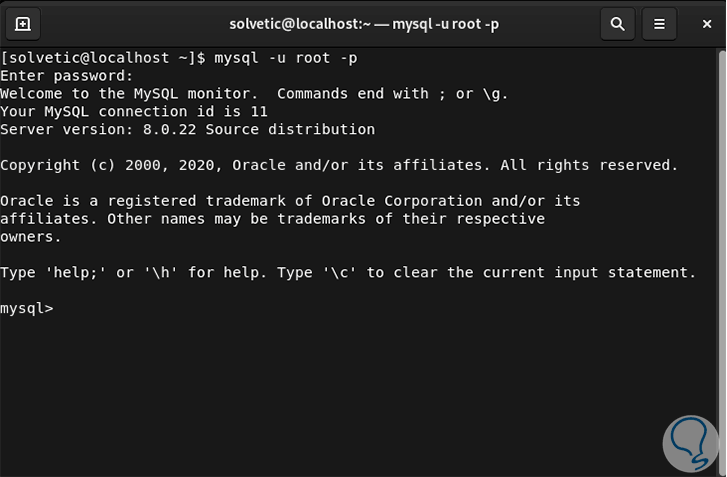 Ingresamos la contraseña para ir a MySQL:
