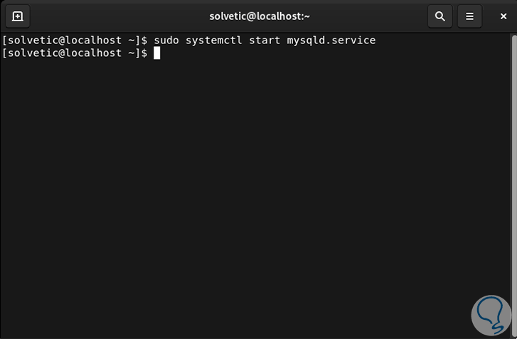 Ahora vamos a iniciar el servicio MySQL con el comando: