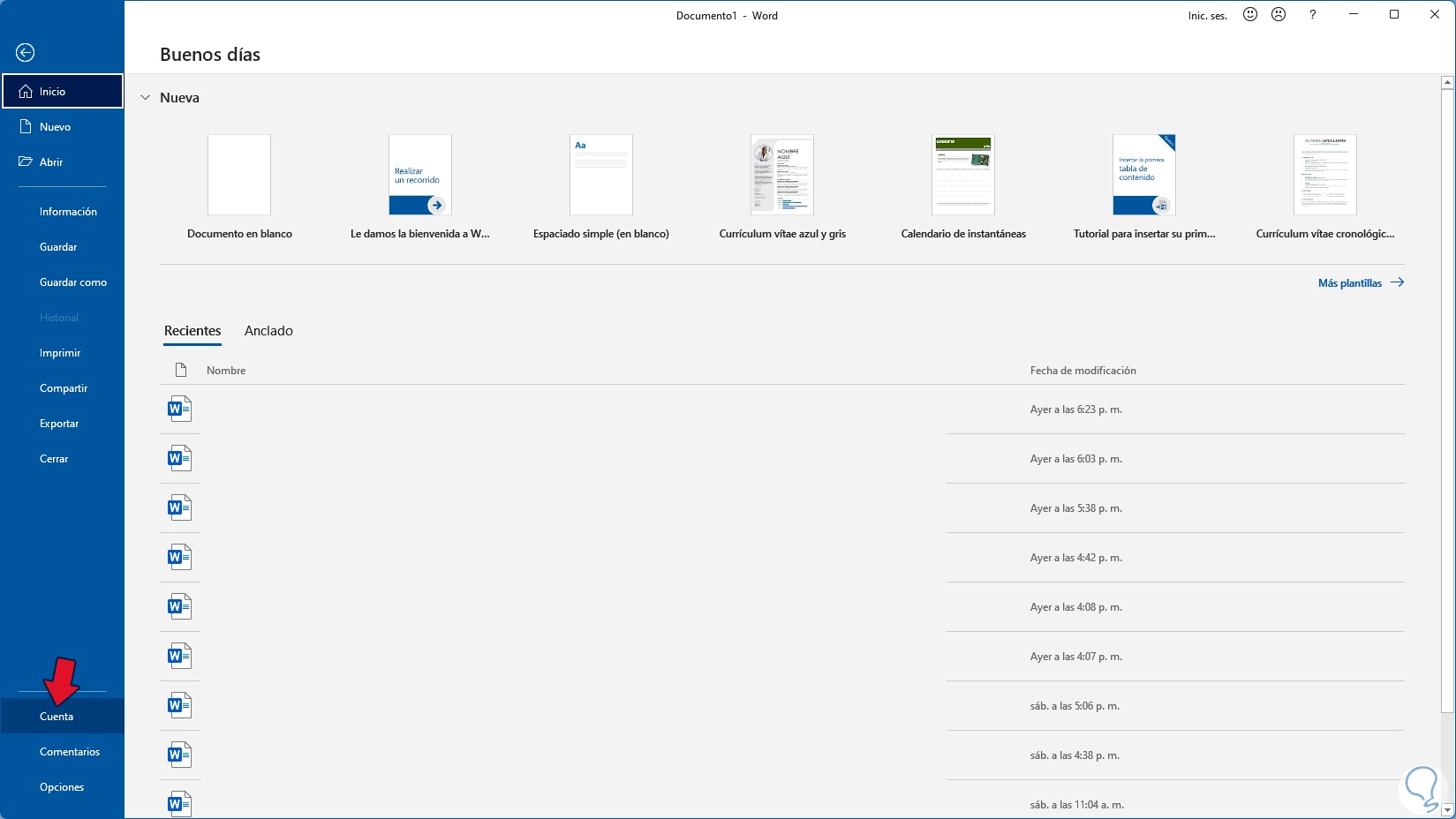 Para este proceso, abrimos Word y vamos a "Archivo - Cuenta":