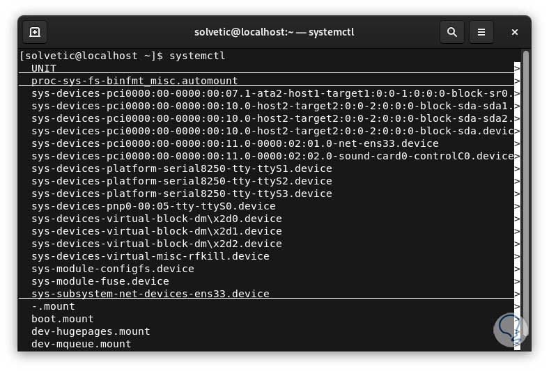 Luego ejecutamos "systemctl" para listar los servicios actuales: