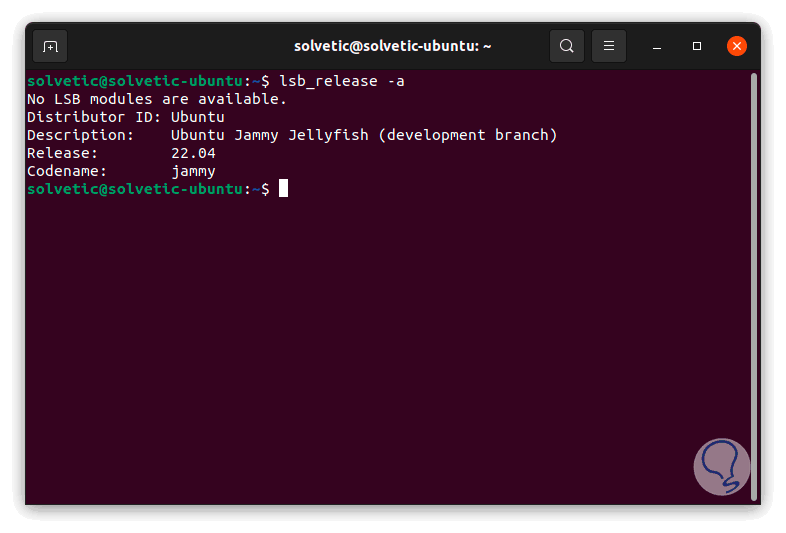 Abrimos la terminal y allí validamos la versión de Ubuntu:
