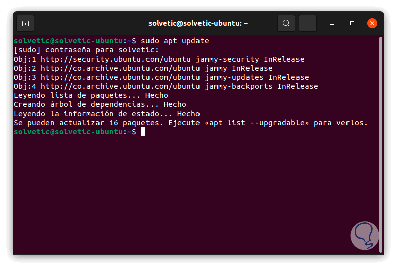 Actualizamos el sistema con el comando: