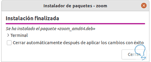 Esperamos que se complete el proceso de instalación de Zoom en Ubuntu 22.04: