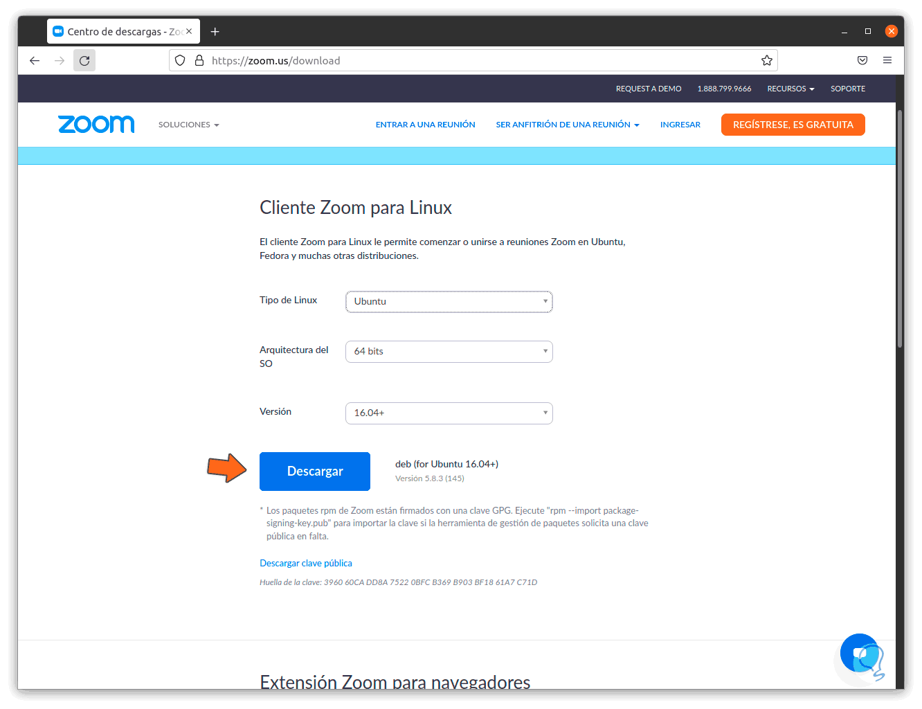 Iremos a la URL de Zoom: