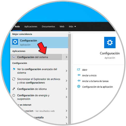Este método implica trabajar con algunos servicios de Windows 10, en el buscador ingresamos "configuración":