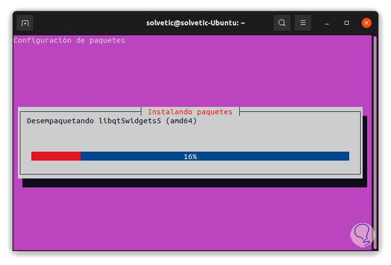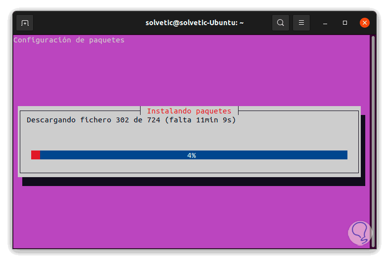 Instalamos KDE con el comando. Esperamos que se descarguen los paquetes y luego se desplegarán algunos mensajes