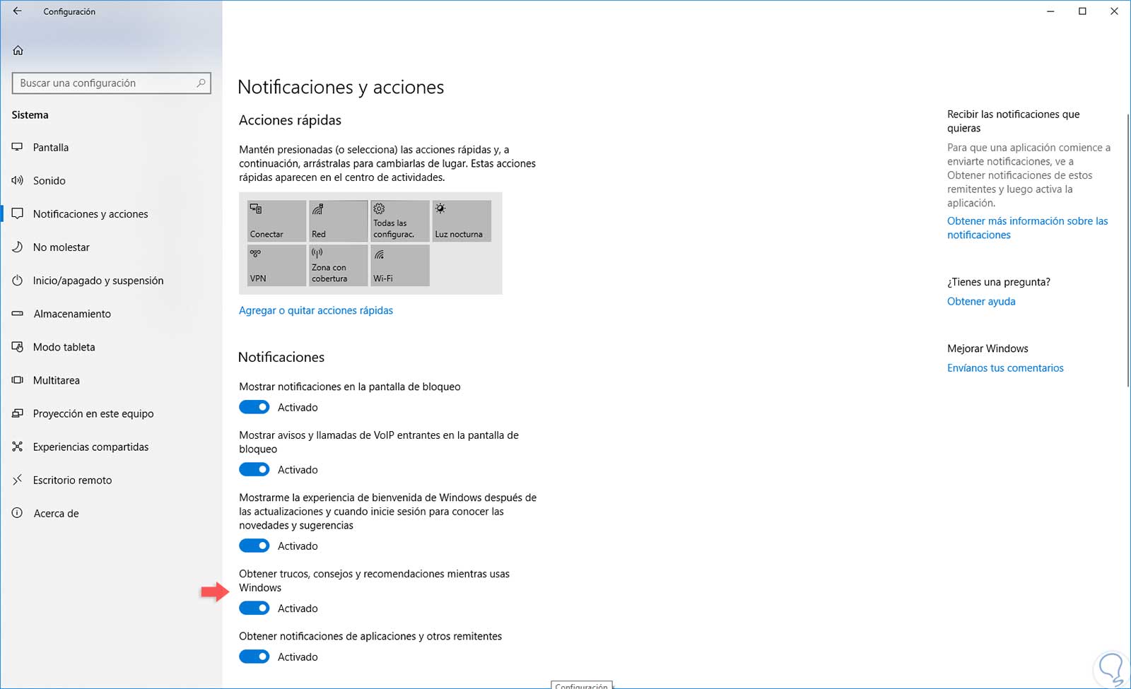Esta es una función que está orientada a los nuevos usuarios de modo que Windows 10 de forma constante estará lanzando consejos y sugerencias sobre cómo usar el sistema operativo, pero esto implica uso de recursos en la mayoría de las veces sin justa causa.