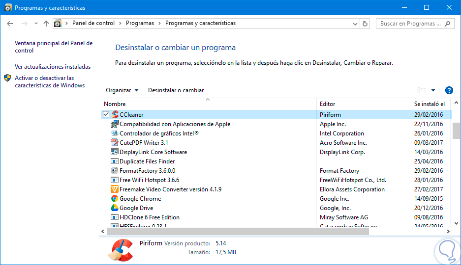 Lo primero que debemos hacer es eliminar los programas que no utilizamos, es el primer paso y regla de oro para tener el ordenador lo más limpio posible. De esta manera teniendo controlado lo que tenemos instalado nos daremos cuenta de forma rápida que programas se han instalado y no usamos.