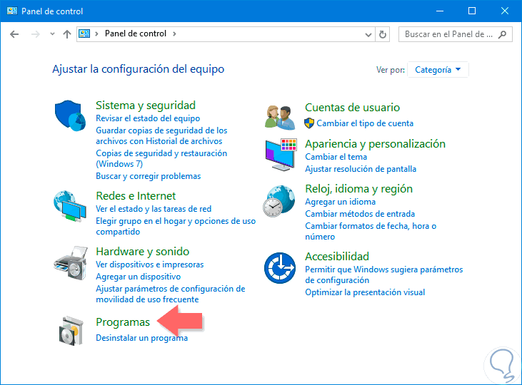 Ahora entra en la categoría de Programas y pincha en Desinstalar un programa.